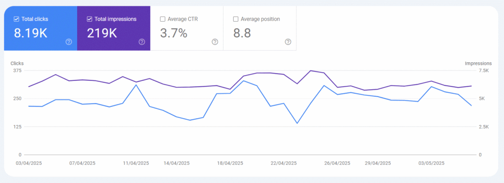 We scaled monthly traffic from 300 to over 8,000 visitors, fueled by top-ranking content and improved technical performance. Nearly 75% of this traffic now comes from organic search, making it a cost-efficient acquisition channel.